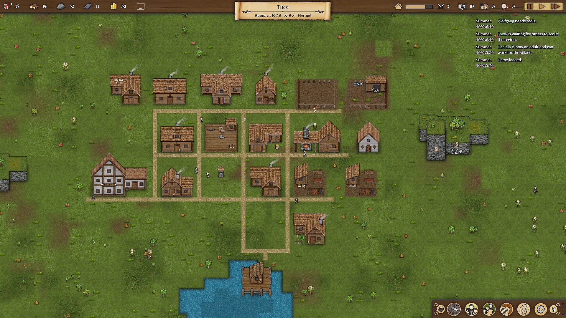 - Управление жителями: специализация, прокачка навыков и удовлетворение базовых потребностей (еда, жильё, вода)