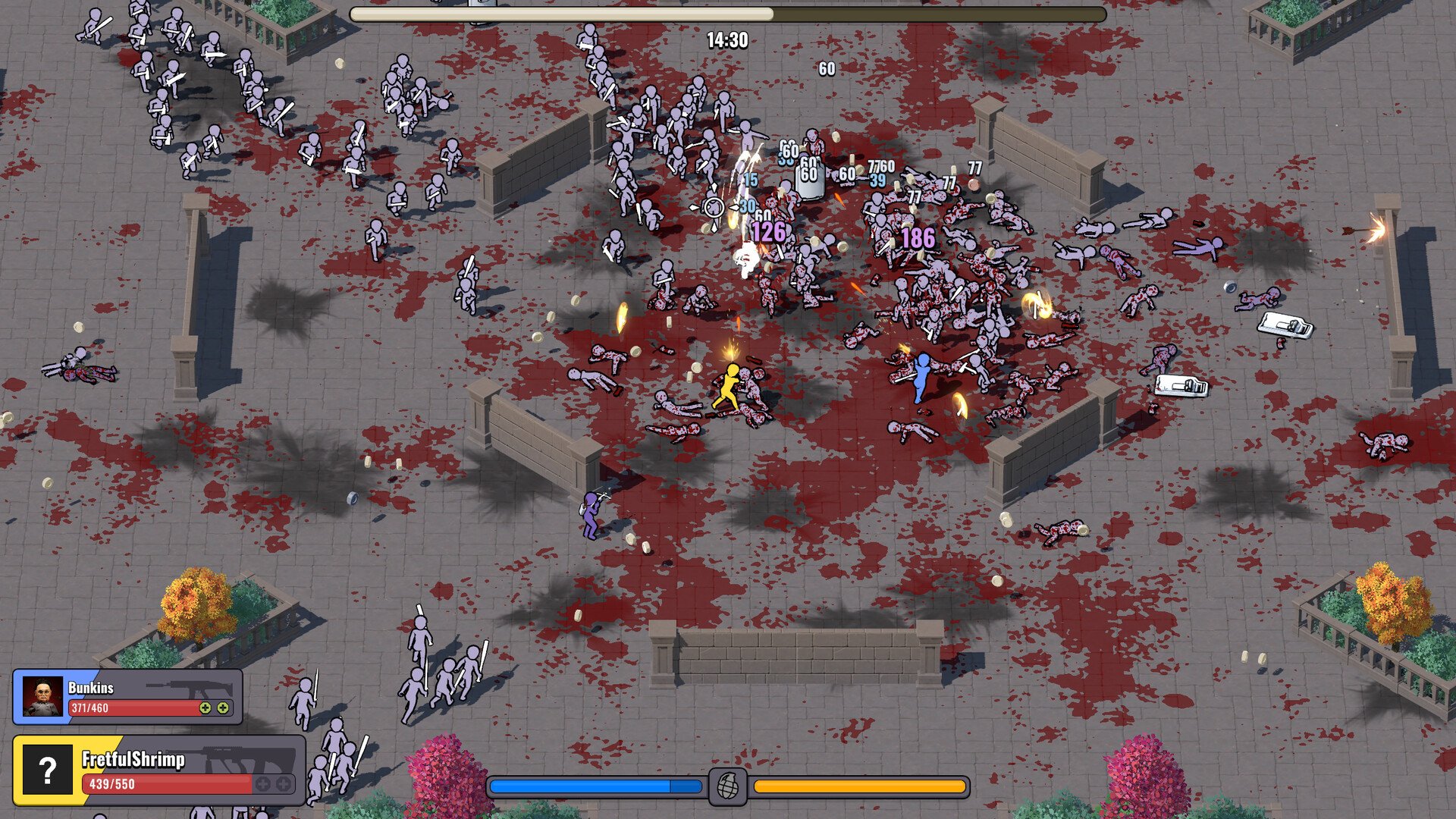 The Horde Wants You Dead - это хаотичный shoot'em up, где вы и ваш отряд должны выжить против сотен и тысяч безумных врагов. Никаких суперспособностей - только оружие, гранаты, тактика и слаженная команда: петляйте, катайтесь, жгите и стреляйте вовремя. Пять нарастающих по сложности уровней и бесконечный режим, полная ragdoll-физика, летающие конечности и кровавые сцены делают каждую битву визуально эффектной (арт-хаус апокалипсиса, если хотите). Собирайте монеты с поверженных, открывайте ящики с припасами, прокачивайте перманентные статы за XP и выбирайте улучшения с умом - припасов мало, а хorde много. Играйте в онлайн-коопе до 4 человек: держитесь вместе, иначе хорда попросит у вас автограф... перед финальным укусом.
